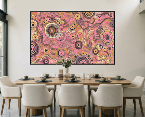 Together, their work is grounded in culture, connection to Country, and the continuation of storytelling through contemporary Aboriginal art. Each painting carries the knowledge, spirit, and traditions of their ancestors, expressed through vibrant colour and intricate dot work.