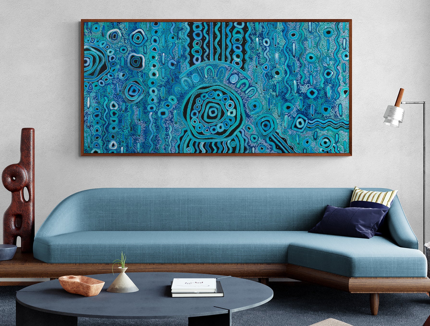 ✨ Own a soulful celebration of Aboriginal culture, renewal, and storytelling. Blue Rain is the perfect centrepiece for your home, office, or gallery. ✨