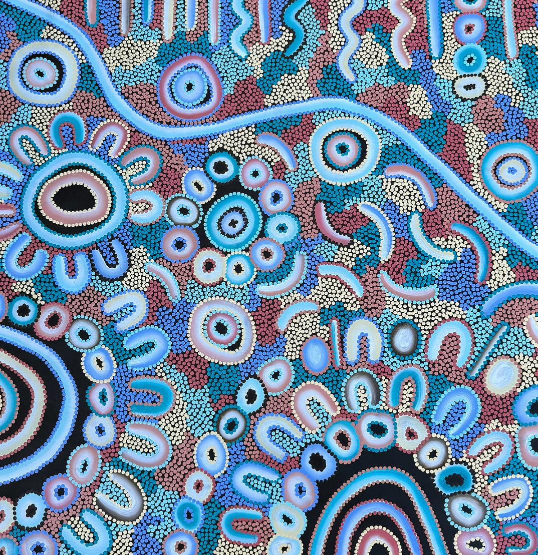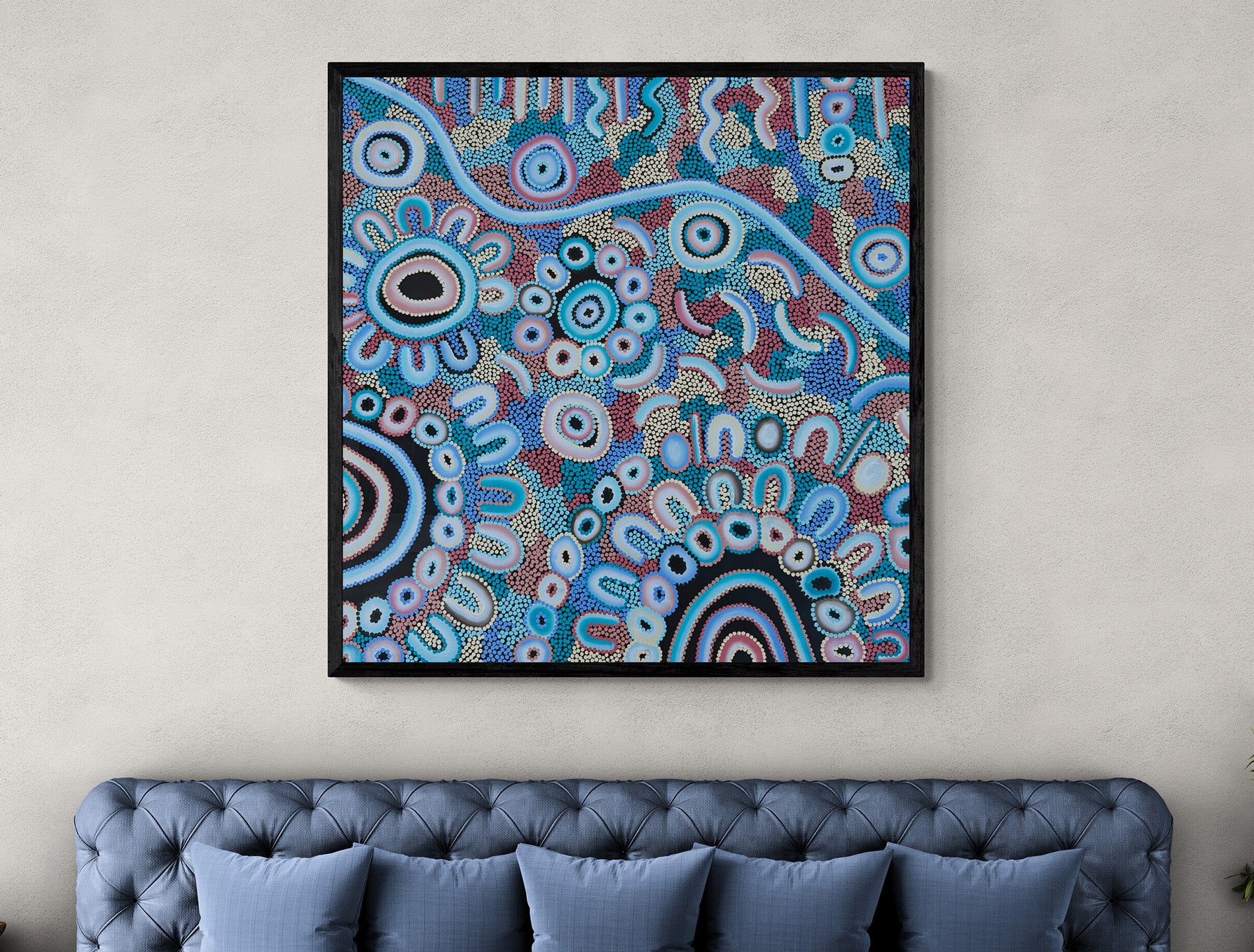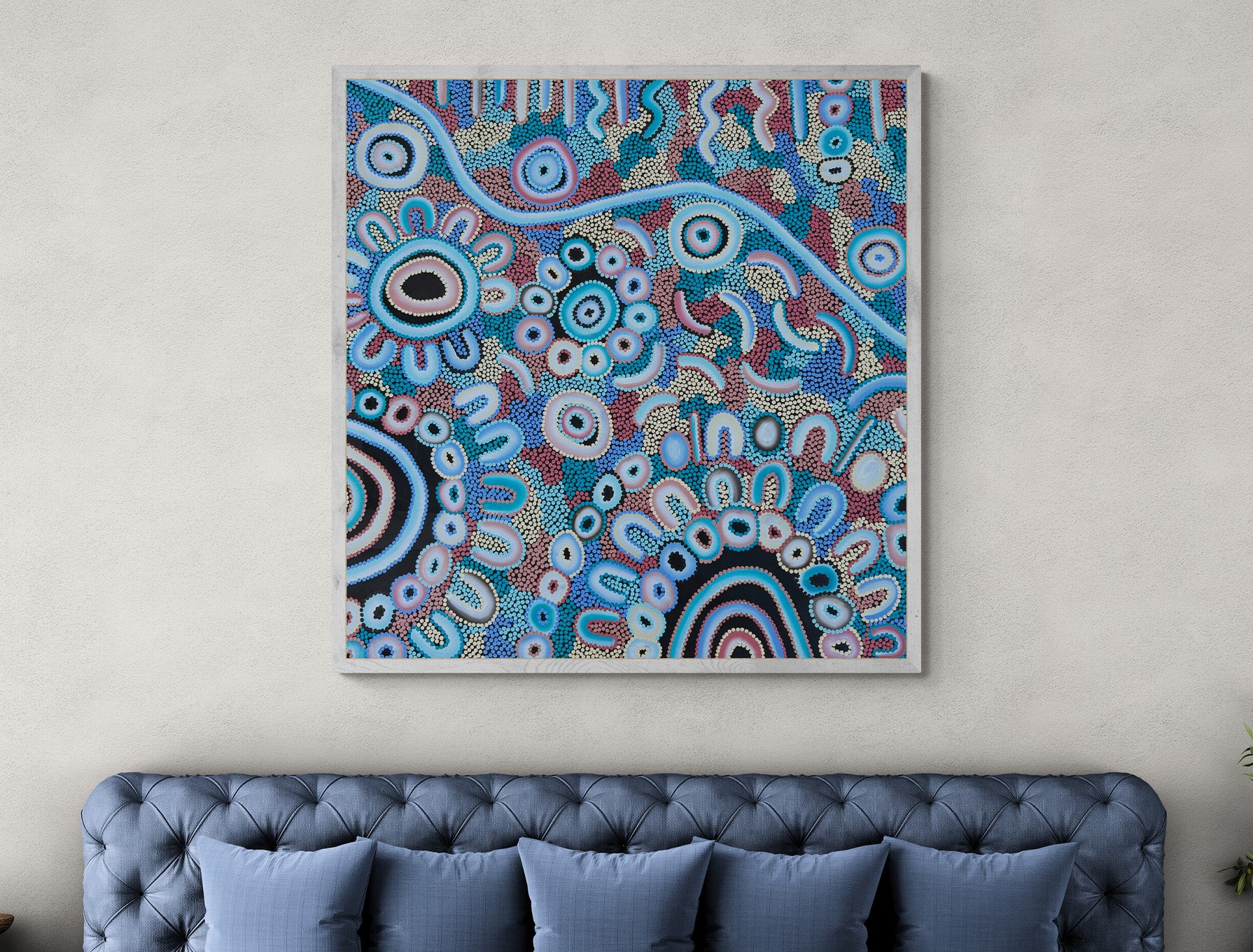 This piece celebrates the joy of loved ones coming together on Country, sharing stories, meals, and moments that matter. Rich colour and storytelling bring Kelilah’s heritage to life.