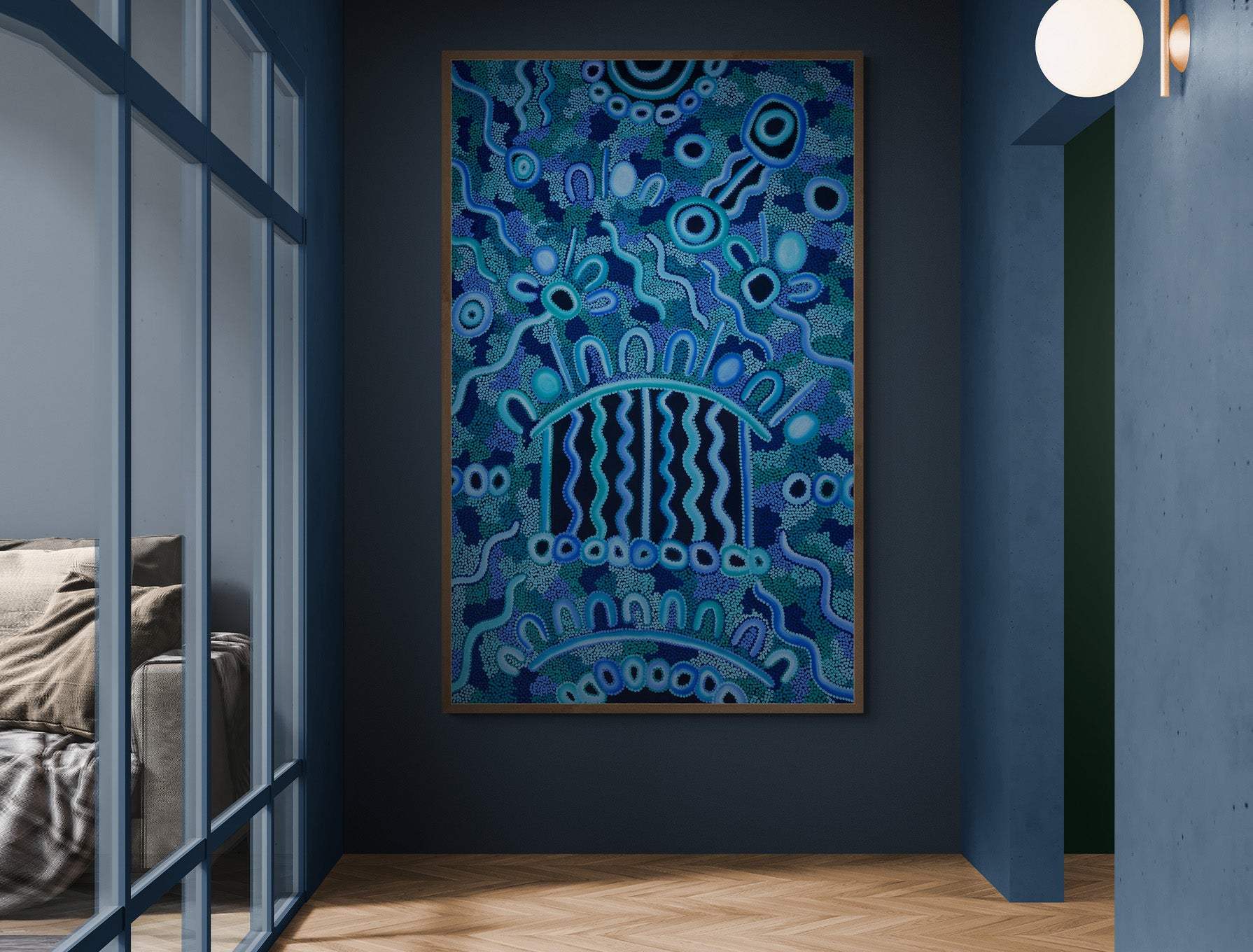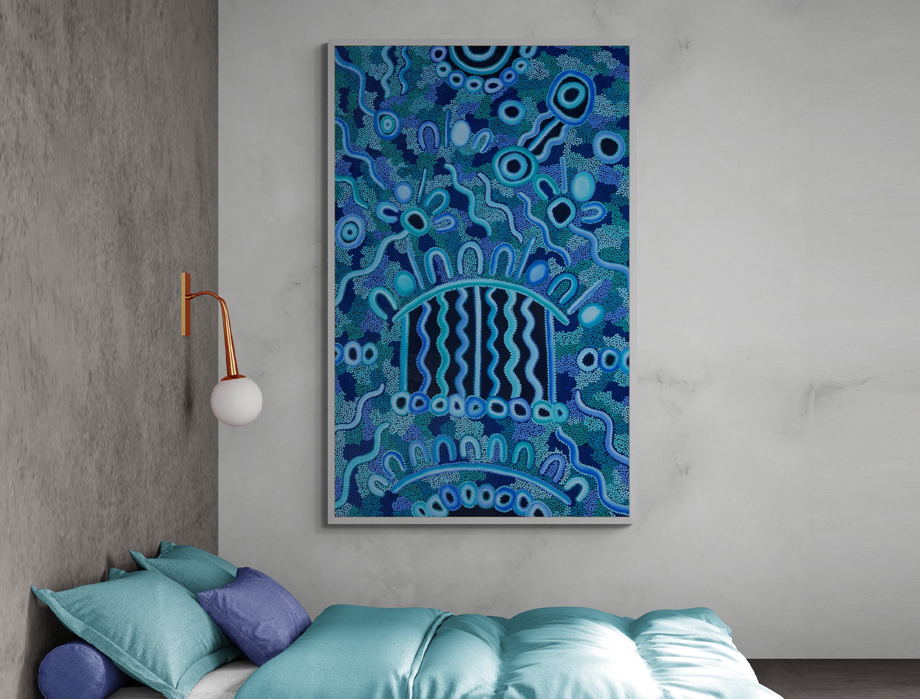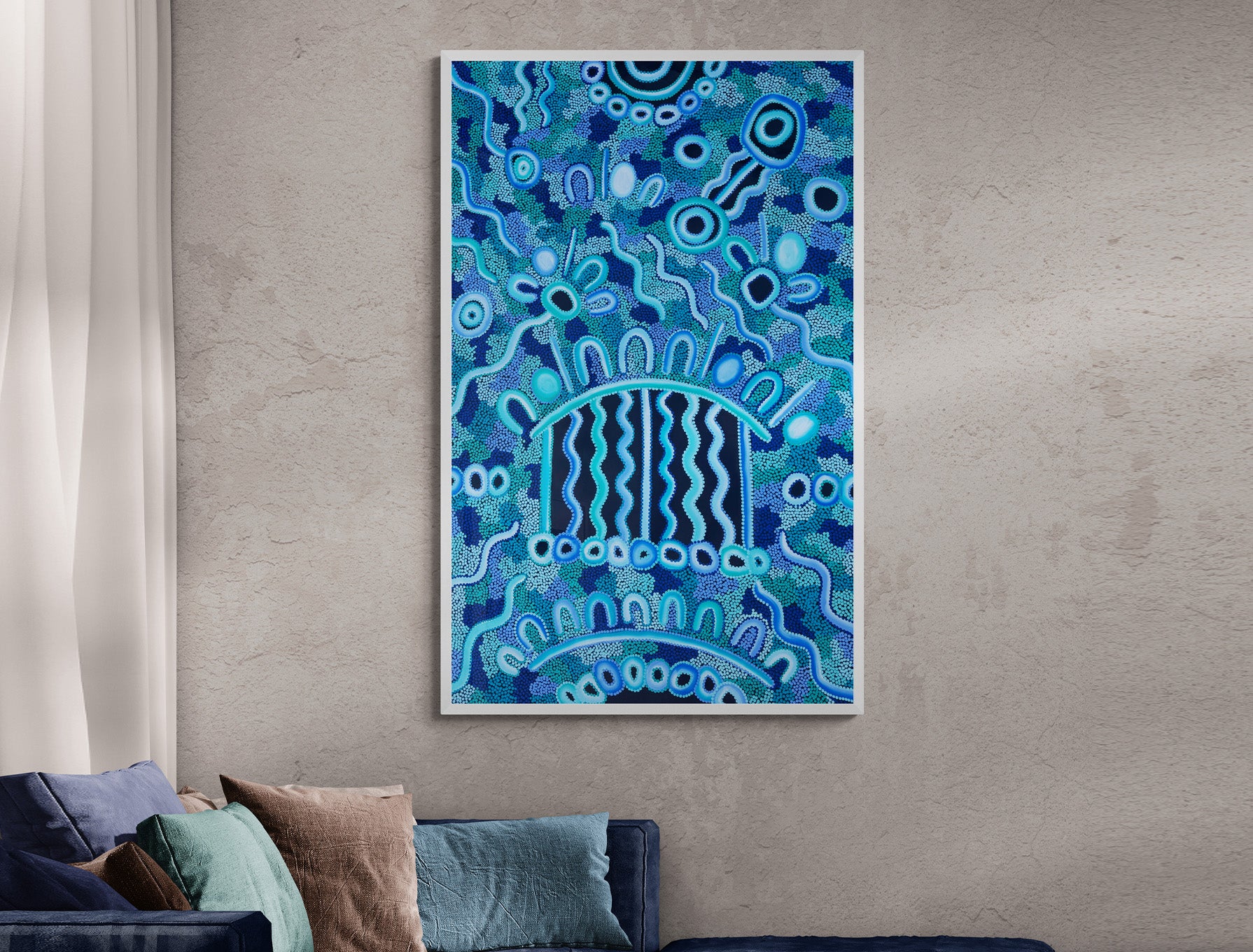 Reflecting intergenerational storytelling, this artwork celebrates the sacred cycle of knowledge passed from Elders to the next generation. Rich colours, dot work, and symbolic motifs convey culture, connection, and learning on Country.