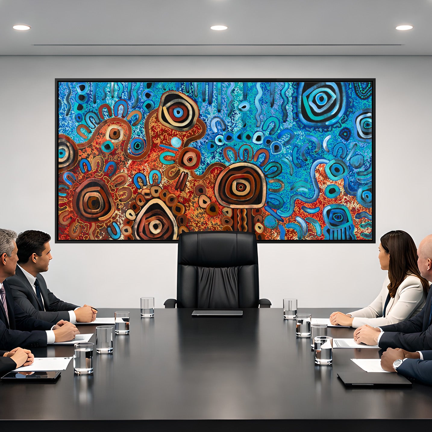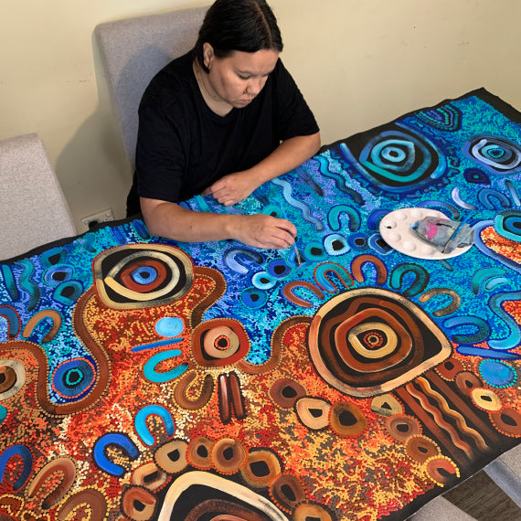 This piece brings warmth, movement and connection into any space while supporting authentic Indigenous Australian art.