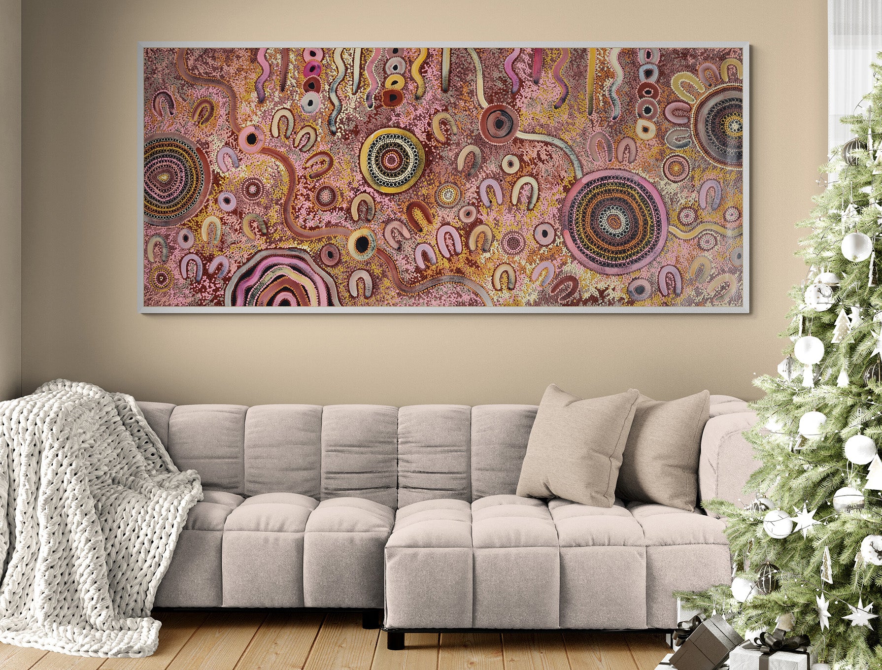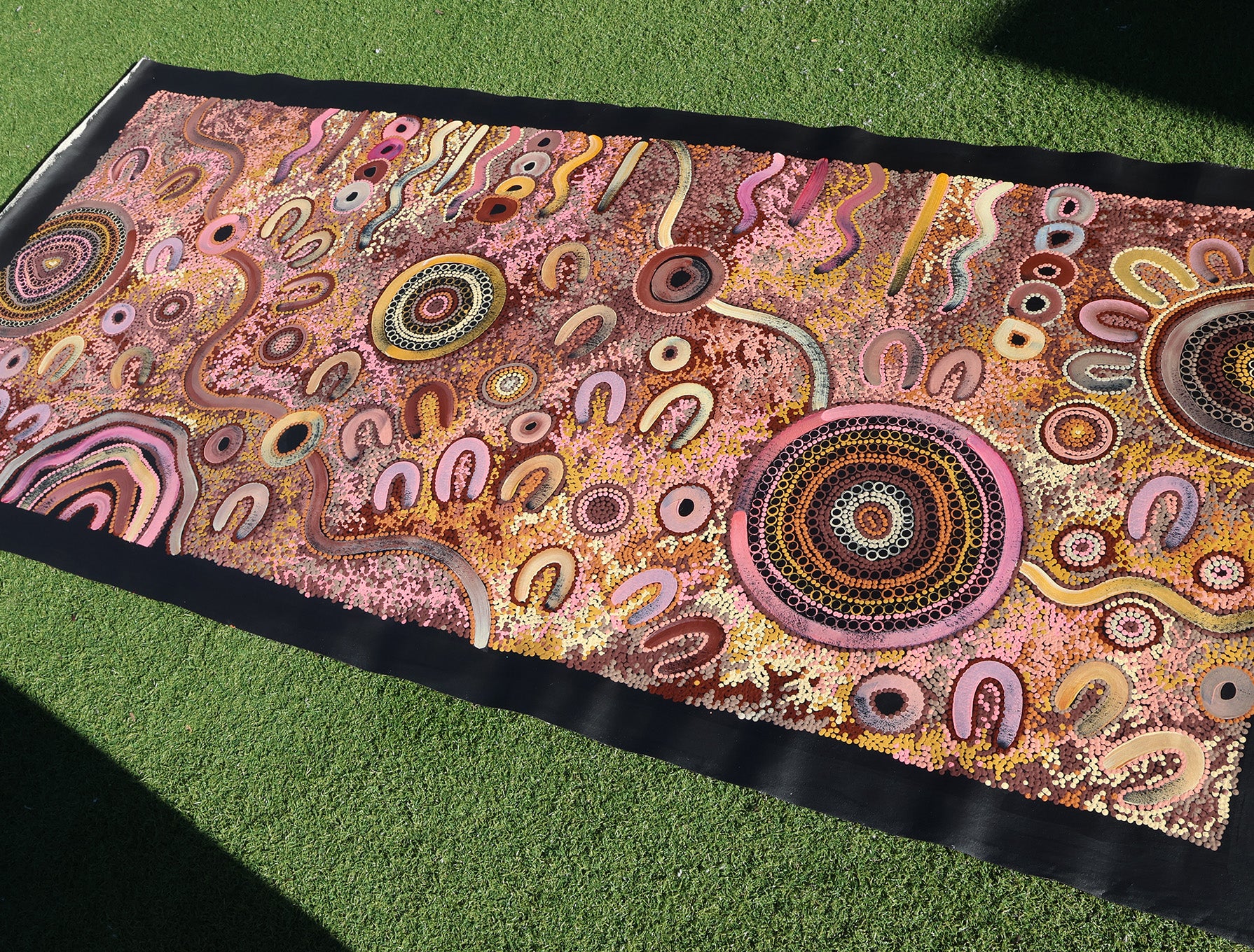 This artwork beautifully celebrates Aboriginal identity and the enduring strength of oral storytelling, the traditions that continue to shape culture, family, and belonging.